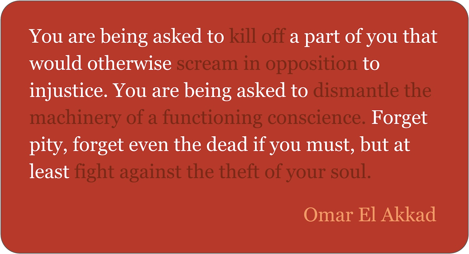 We’re also told that this non-attachment doesn’t mean apathy or indifference. Instead, it’s meant to allow people like me (and others far removed from the conflict) to engage constructively without being overwhelmed by feelings of rage, grief or despair. This is supposed to help us remain steady in the face of intractable suffering, continuing to care and act where we can.